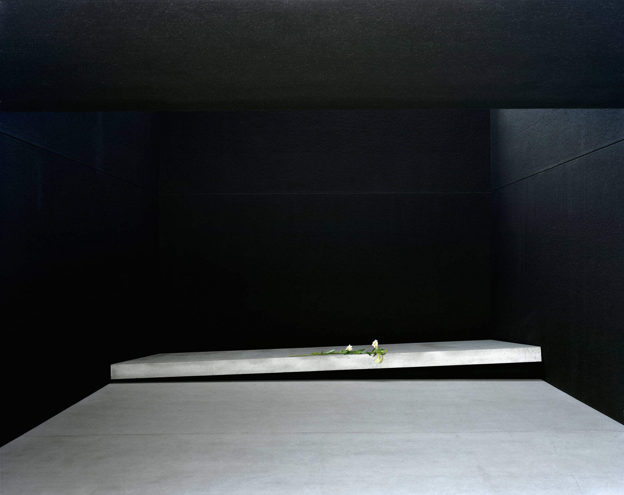 Geborgen unter der Bronzehülle betritt der Besucher den Raum der Stille: Das transzendentale Innere ist schwarz, die realen Raumgrenzen verschwimmen. Und so wie im Tod das Leben aus den Fugen gerät, gibt es auch hier eine Irritation: Die letzte Bodenplatte hat sich aus der Ordnung gelöst. Kränze, Blumen und Erinnerungsstücke können darauf abgelegt werden. Durch das Oberlicht und durch die Bronzehülle strahlt Licht ins Innere und erzeugt ein Schattenspiel.