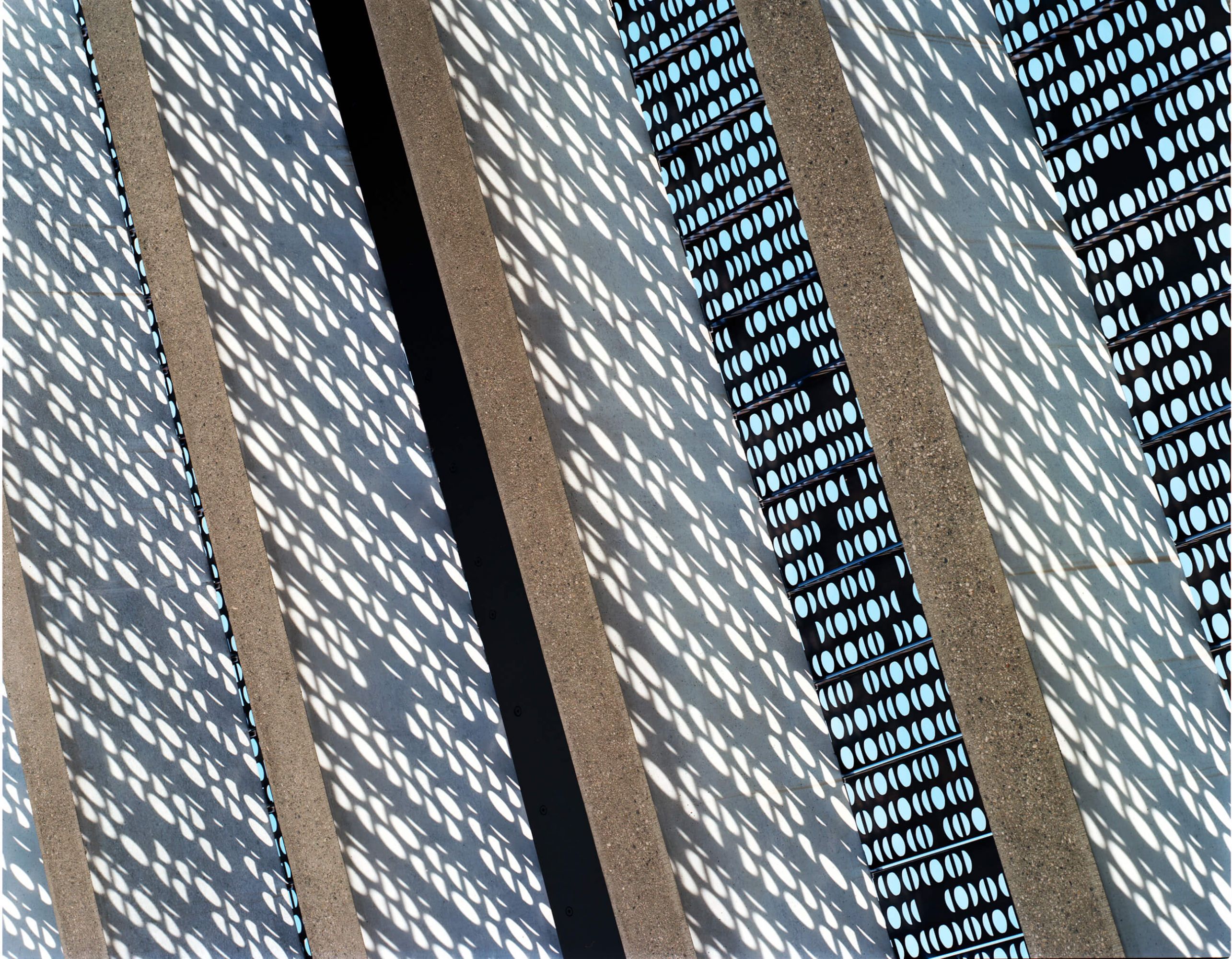 Über eine tektonische Struktur aus Stahlbetonfertigteilen ist ein feines „Bronzekleid“ gelegt. Daraus sind die Formen halber und ganzer Erkennungsmarken gestanzt. Die Form der geteilten Erkennungsmarke steht für den Tod. Der Anordnung der ausgestanzten Marken liegt eine Codierung zugrunde, die den Eid der Zeit- und Berufssoldaten, das Gelöbnis der Wehrdienstleistenden sowie den Amtseid der Wehrverwaltung darstellt.