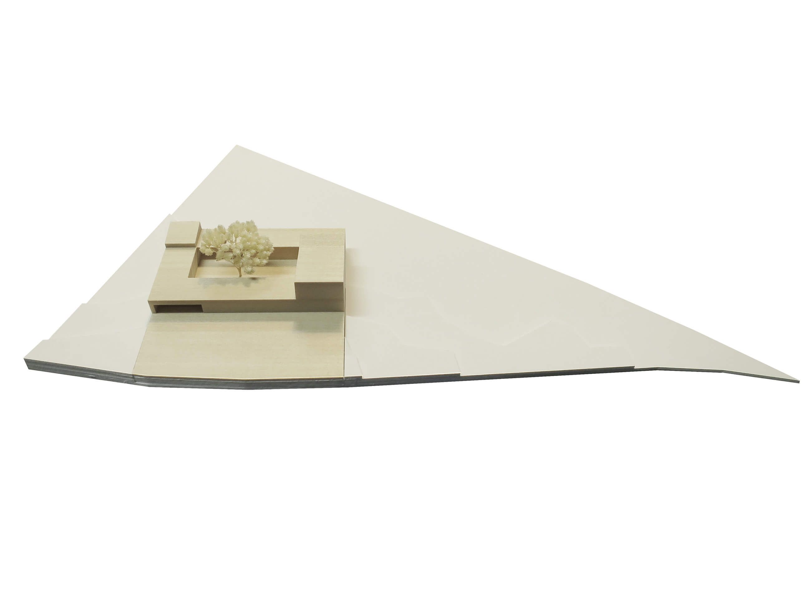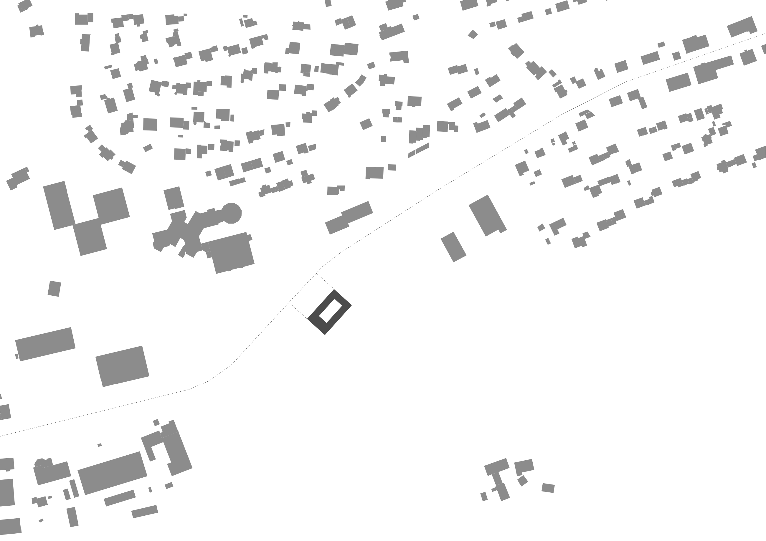 Die Organisation des Rathauses reagiert feinsinnig auf die bestehende Topographie und vermittelt zwischen den unterschiedlichen Aussenniveaus. Die Hanglage ermöglicht eine barrierefreie Erschließung auf zwei Ebenen, mit jeweils angemessenem Entree vom neuen straßenseitigen Vorplatz oder von der, dem natürlichen Geländeverlauf folgenden, tiefer gelegenen Parkplatzebene. Das Raumprogramm gruppiert sich mit den wesentlichen Funktionen auf dem Straßenniveau um einen zentralen Innenhof mit hoher Aufenthaltsqualität. Die hierdurch entstehende, in sich schlüssige Raumabfolge findet eine, der wichtigen Funktion als Rathaus angemessene Proportion bei gleichzeitiger Berücksichtigung der bisherigen Ortsrandlage und dem Übergang in die freie Landschaft. Die Ausformung erzeugt einen eigenständigen, robusten Körper für die bisher wenig baulich geprägte Umgebung, welcher als Bindeglied der historischen Ortsteile fungiert. Die im Südosten des Grundstücks angeordneten Parkmöglichkeiten werden von einem Platanendach gedeckt. Von hier kann die Innenhofebene über eine Freitreppe erreicht werden. Es entsteht eine attraktive, gedeckte Terrasse, mit Blick zur Talseite. Der Blick wird dabei in die Landschaft, über das Blätterdach hinweg, gelenkt.