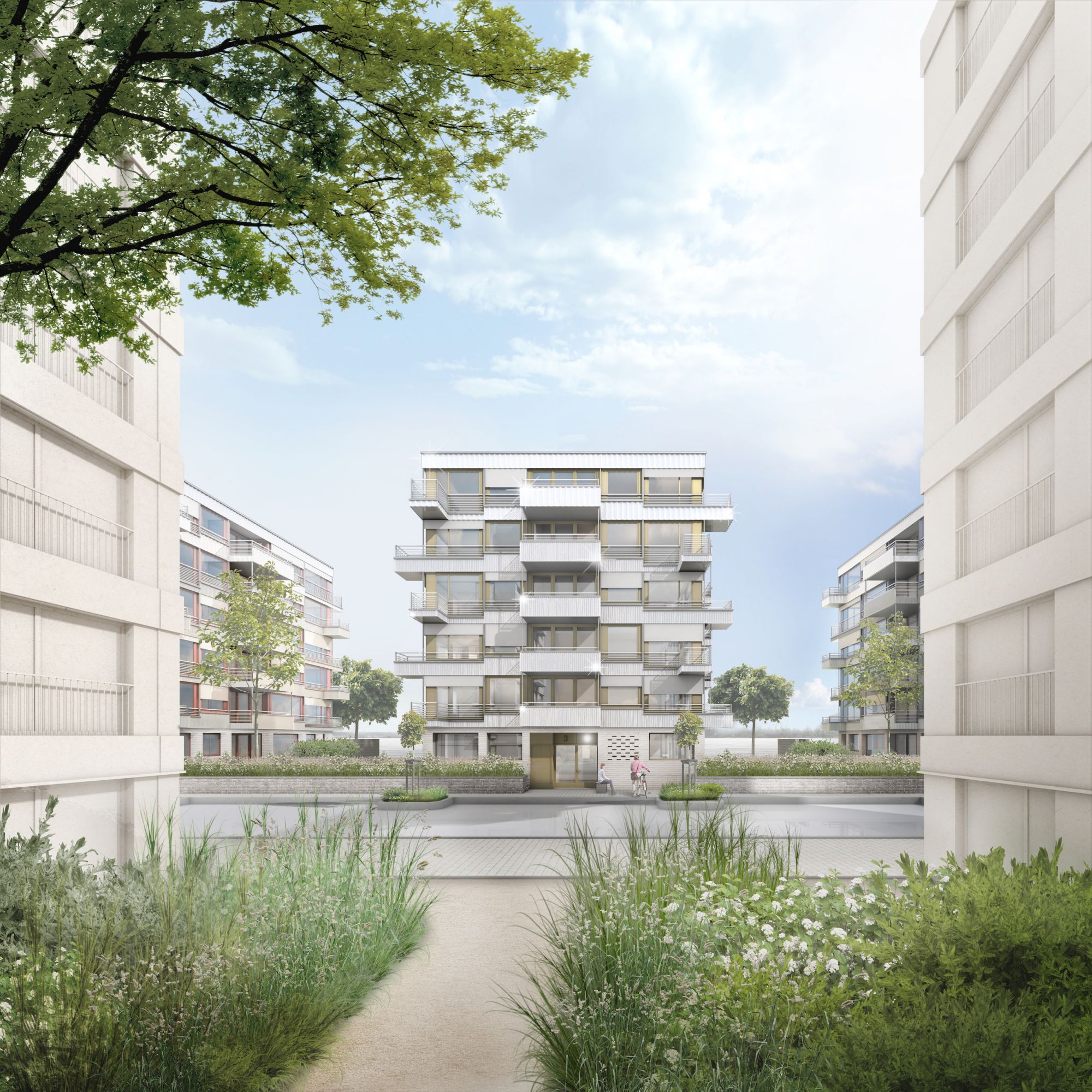 Die fünf Punkthäuser positionieren sich als markantes Ensemble der Hafensilhouette und vermitteln zwischen Stadtraum und Rheinufer. Differenzierungen von privaten, semi-öffentlichen und öffentlichen Bereichen reagieren auf die Bedürfnisse von Einzelpersonen und ihrer Gemeinschaft.