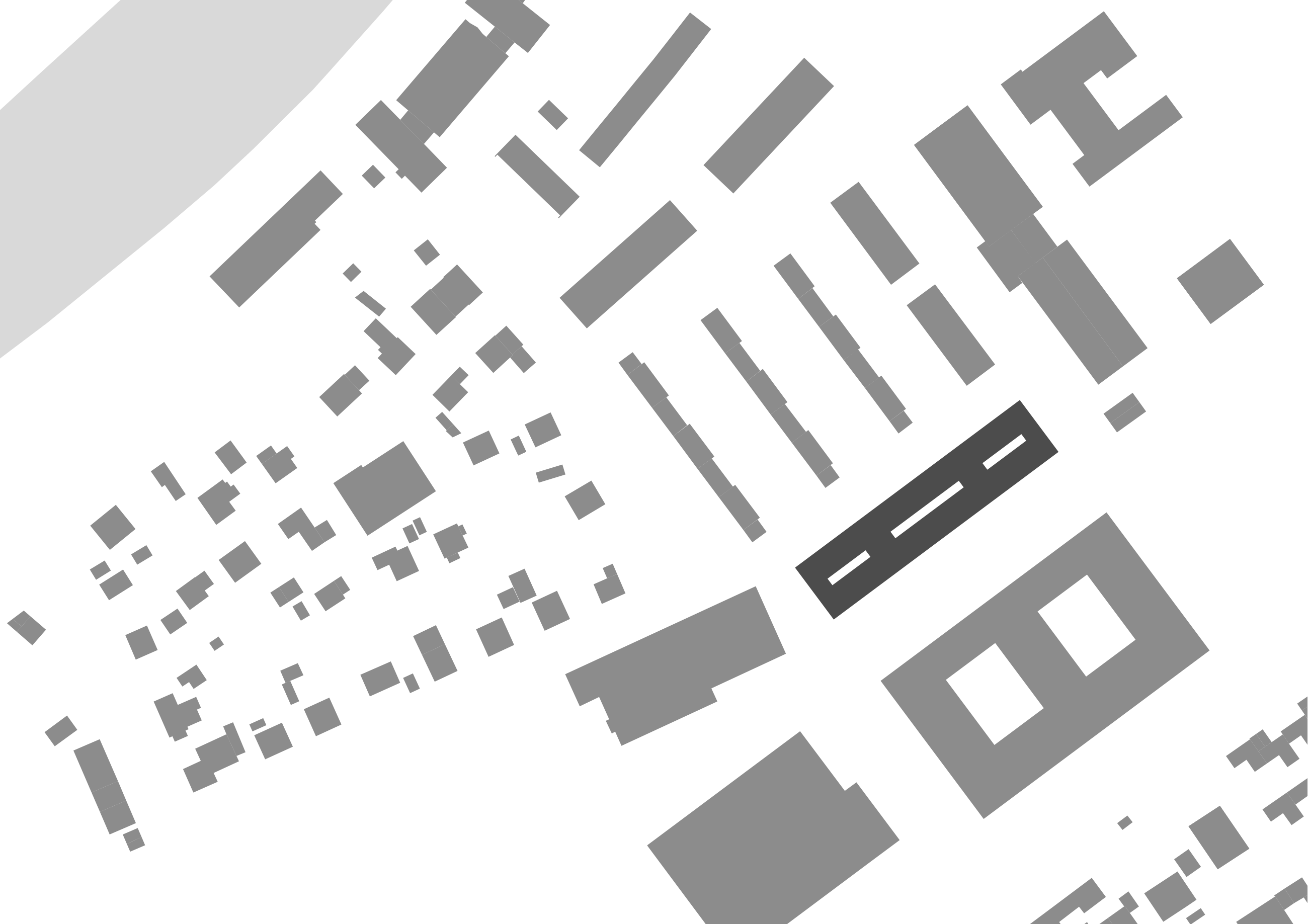 Das Wettbewerbsgrundstück liegt an der Schnittstelle zwischen dem neuen Wohngebiet im Norden und dem geplanten Gewerbegebiet im Süden. Es wird von einem heterogenen Umfeld verschiedener Nutzungen mit jeweils unterschiedlichster städtebaulicher Körnung bestimmt. Der von uns konzipierte Baukörper soll dieser Ausgangssituation bestmöglich gerecht werden, indem er mit seiner komprimierten, kompakten Baumasse zwischen den einerseits großmaßstäblichen Strukturen im Süden und der andererseits kleinteiligen Wohnbebauung im Norden eine vermittelnde Rolle einnimmt. In seiner Ausrichtung ist das Grundstück von zwei Seiten mit jeweils ganz unterschiedlichen Qualitäten geprägt: Im Südosten die Sonne mit Lärmbelastung, ausgehend von der Niedermayerstraße, im Nordwesten die ruhige, sonnenabgewandte Wohnlage mit Orientierung zur Landshuter Altstadt und Isar.