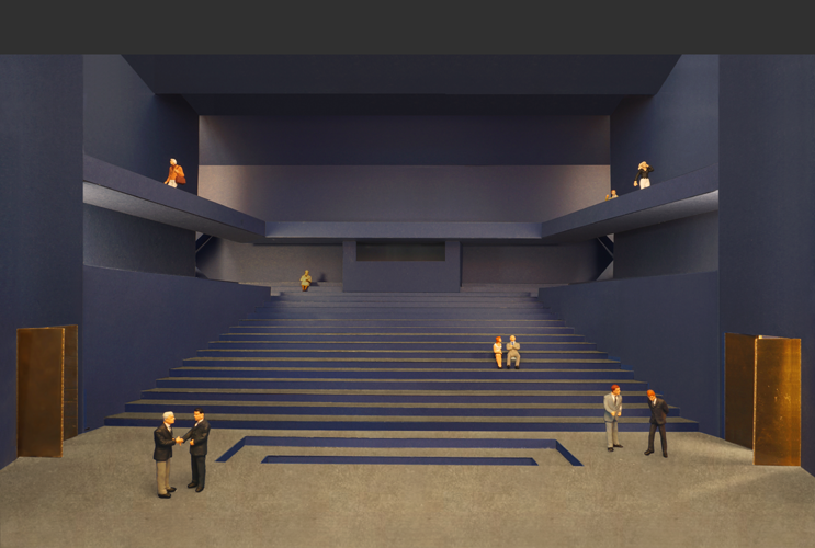 Das Foyer im Erdgeschoss stellt eine repräsentative Veranstaltungsfläche mit direktem Anschluss an die Cafeteria, die Cateringflächen und den Innenhof dar. Von dort aus leitet eine große Treppe über eine Galerieebene zum Hörsaalfoyer und zur Terrasse, die Aussicht auf Inn, Altstadt und Veste Oberhaus bietet. Der große Hör- und Konzertsaal mit seinen zwei Rängen und variabler Raumakustik wird über die sich hochfaltende Parkettebene erschlossen. Durch eine akustisch wirksame Innenschale aus blau lasiertem Holz erhält der „Blaue Saal“ einen besonderen Wiedererkennungswert als Ort der Konzentration und der Wissenschaft. In Anlehnung an die Inszenierung barocker Räume wird der Saal zudem indirekt über unsichtbare Oberlichter erleuchtet. Die multifunktionalen Seminar- und Verfügungsräume befinden sich in direkter Nähe zum Hörsaal, die Büros sind über vier Geschosse um einen Lichthof organisiert. Alle Funktionen und Zugangsebenen sind über Passagen, Treppen, Lichthöfe und über das Forum miteinander verbunden. So entstehen vielfältige Orte des fachlichen Austauschs und der informellen Kommunikation.