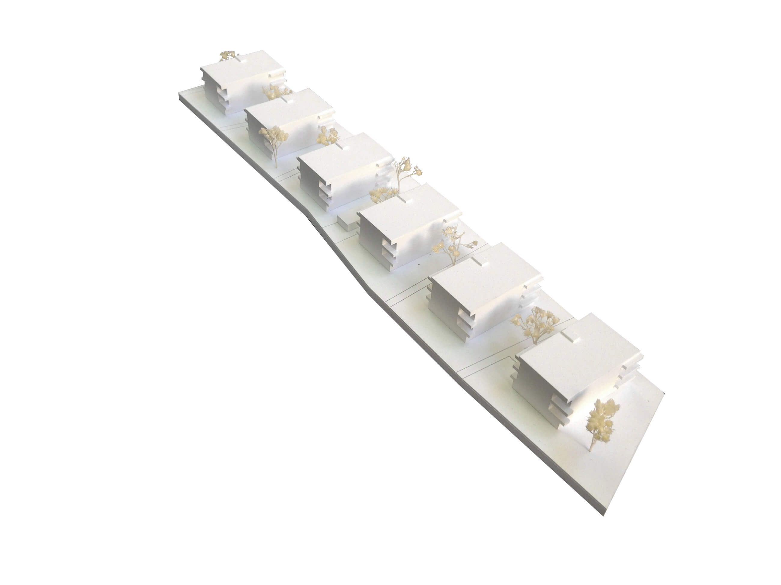 Der hier vorgeschlagene Entwurf beschäftigt sich mit dem Thema Einheit und Vielfalt. Ein auf den ersten Blick einheitliches Auftreten der sechs Gebäude, entpuppt sich bei genauerem Hinsehen als individuelle Einzelgestaltung. Übergeordnete Motive werden differenziert ausgestaltet. So wird eine Quartierszugehörigkeit geschaffen und der persönliche Bezug zwischen Bewohner und dem Zuhause gestärkt.