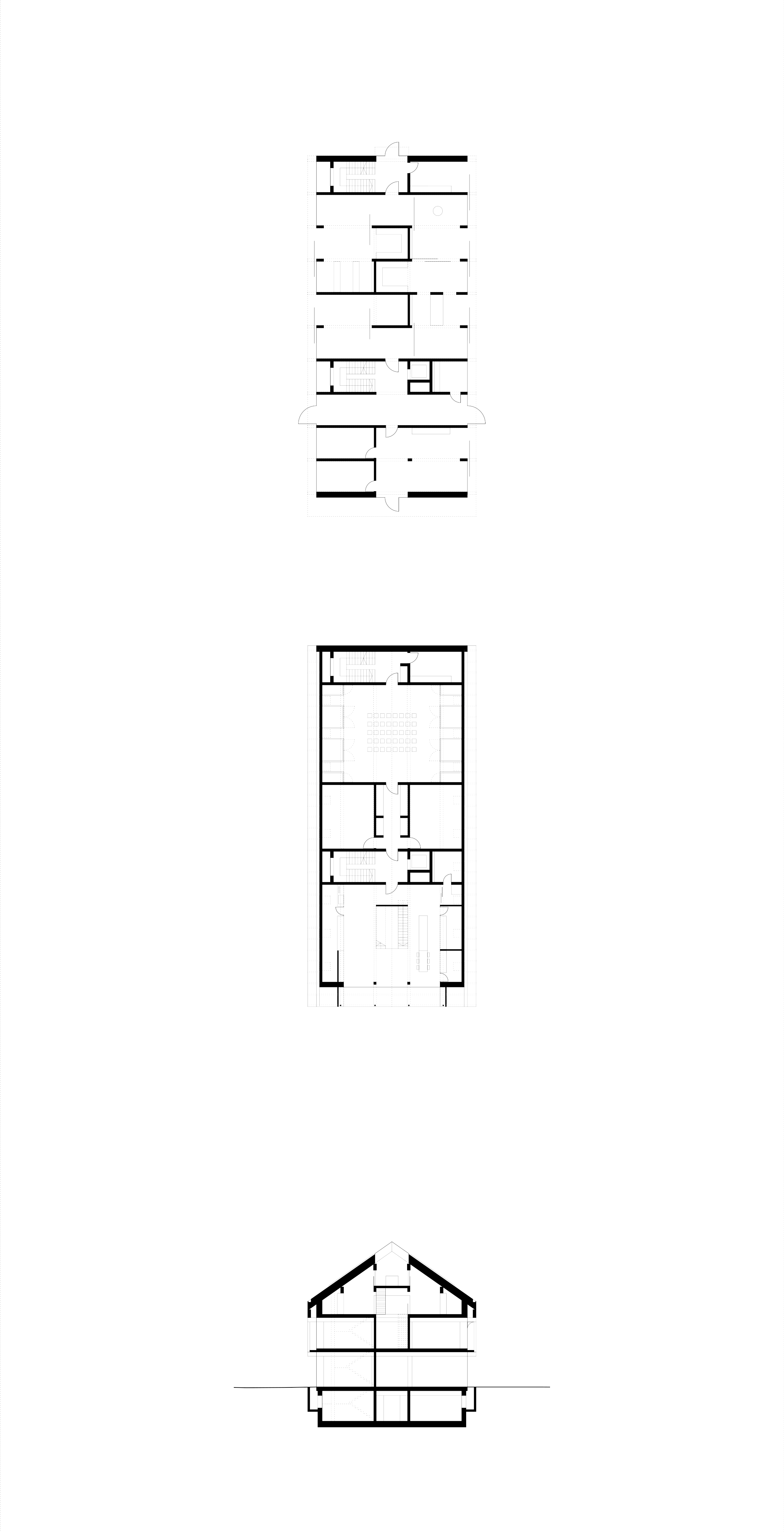 Im darüber liegenden Obergeschoss sind die der Schulverwaltung dienlichen Büroräume angeordnet, sie werden durch weitere Büroräume im Dachgeschoss ergänzt. Hier ist ebenfalls der große Saal situiert, der sich den großzügigen Dachraum zu Nutzen und diesen erlebbar macht und künftig für Lehrveranstaltungen der Akademie genutzt wird.